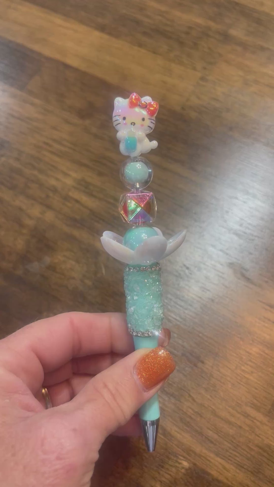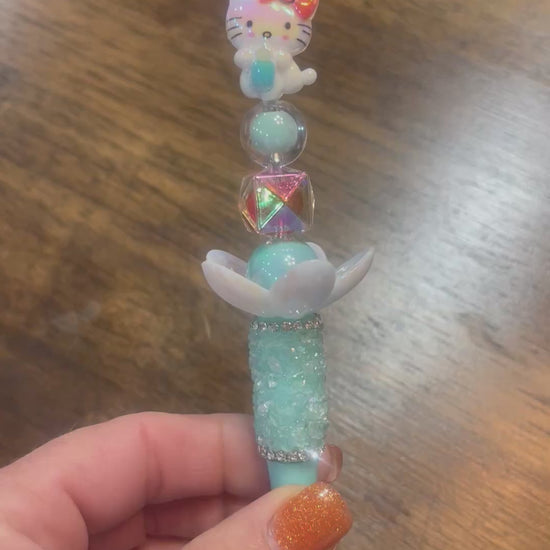 Light blue pen with crystal wrap. Yellow Kitty focal.